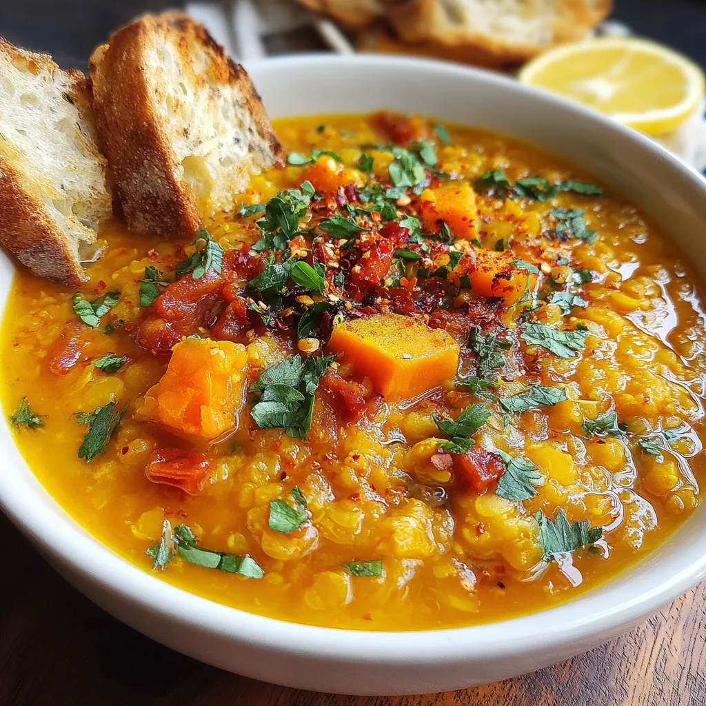 Red Lentil Soup with Veggies and Herbs